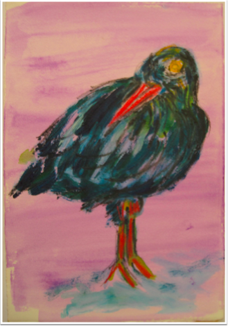 “Oyster Catcher,” is a North West nesting sea bird on Indian Island, a Marine Health Observatory in the San Juan Islands, Washington. “Oyster Catcher” is the mascot for the new seabird research by Kwiaht, a non-profit organization, and the Washington State Beach Watchers